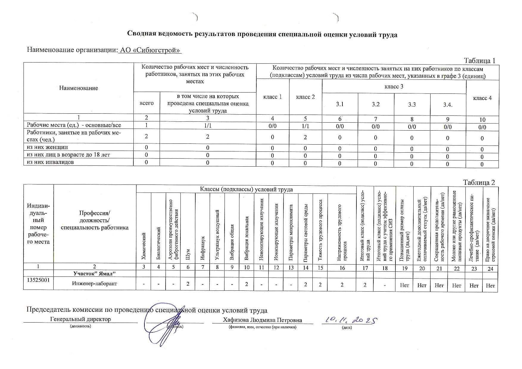 Сводная ведомость результатов проведения специальной оценки условий труда от 10 ноября 2025, 2 стр
