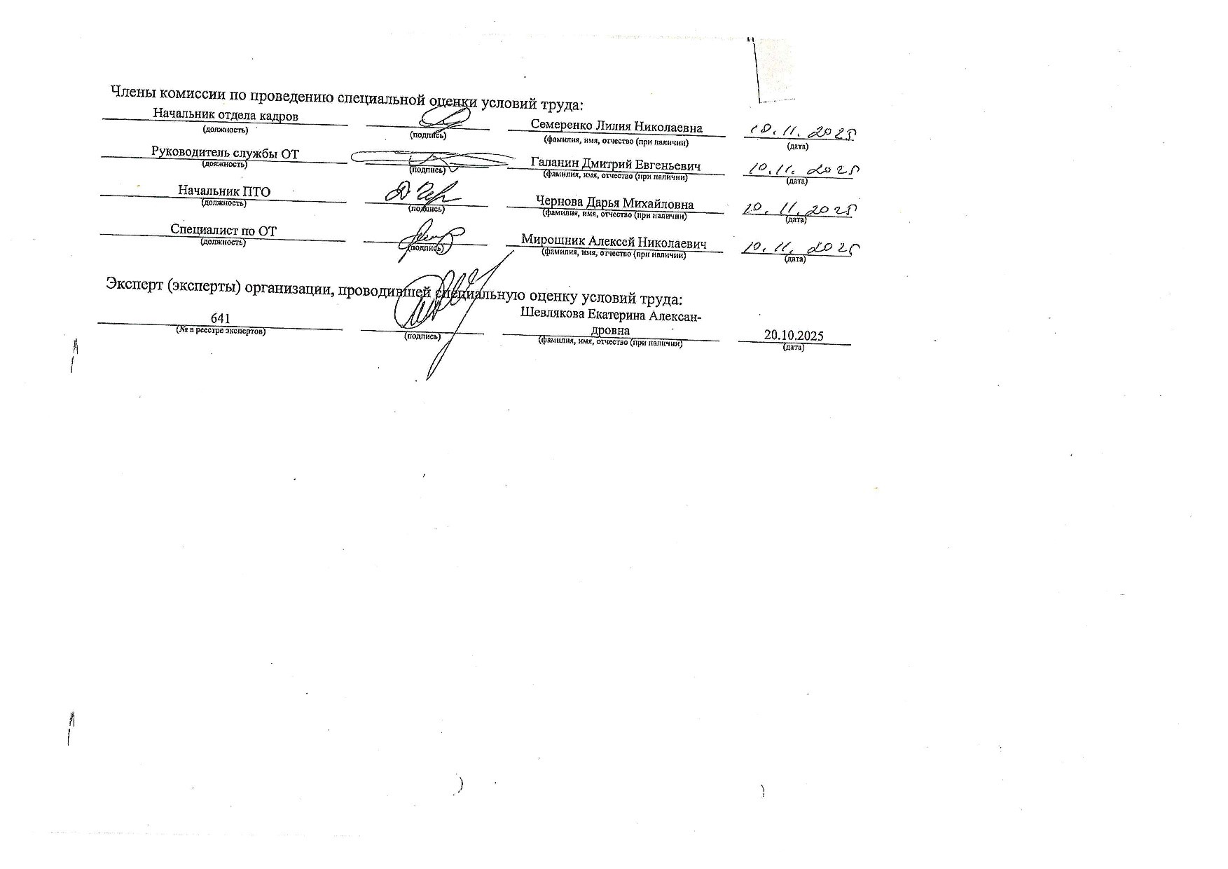 Перечень рабочих мест, на которых проводилась специальная оценка условий труда от от 10 ноября 2025, 1 стр